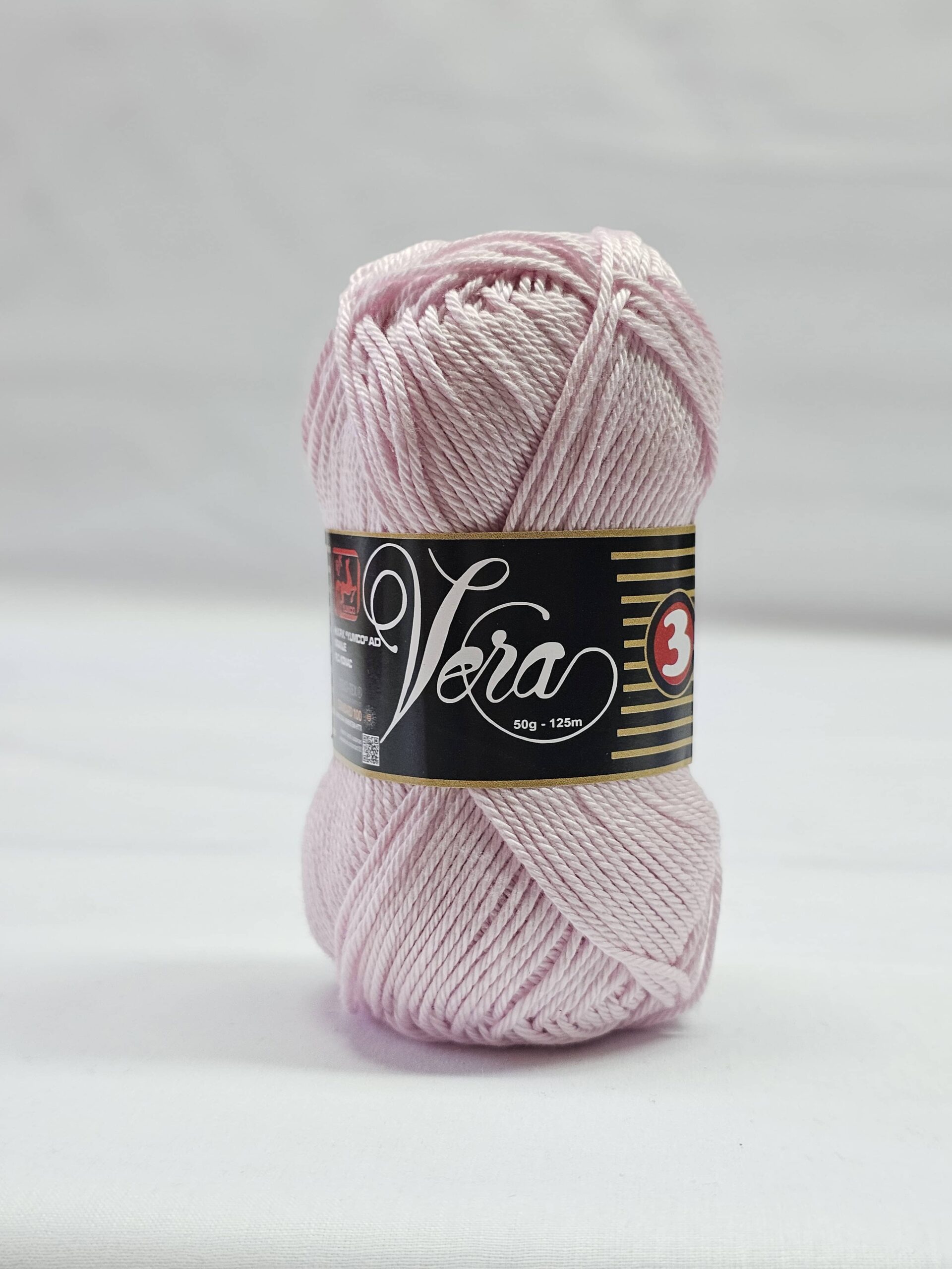 Vera je konac za ručni rad domaćeg proizvođača. Po sastavu je 100% češljani pamuk. Pogodan je i za pletenje i za heklanje kako odevnih predmeta, tako i amigurumi igračaka i torbi.